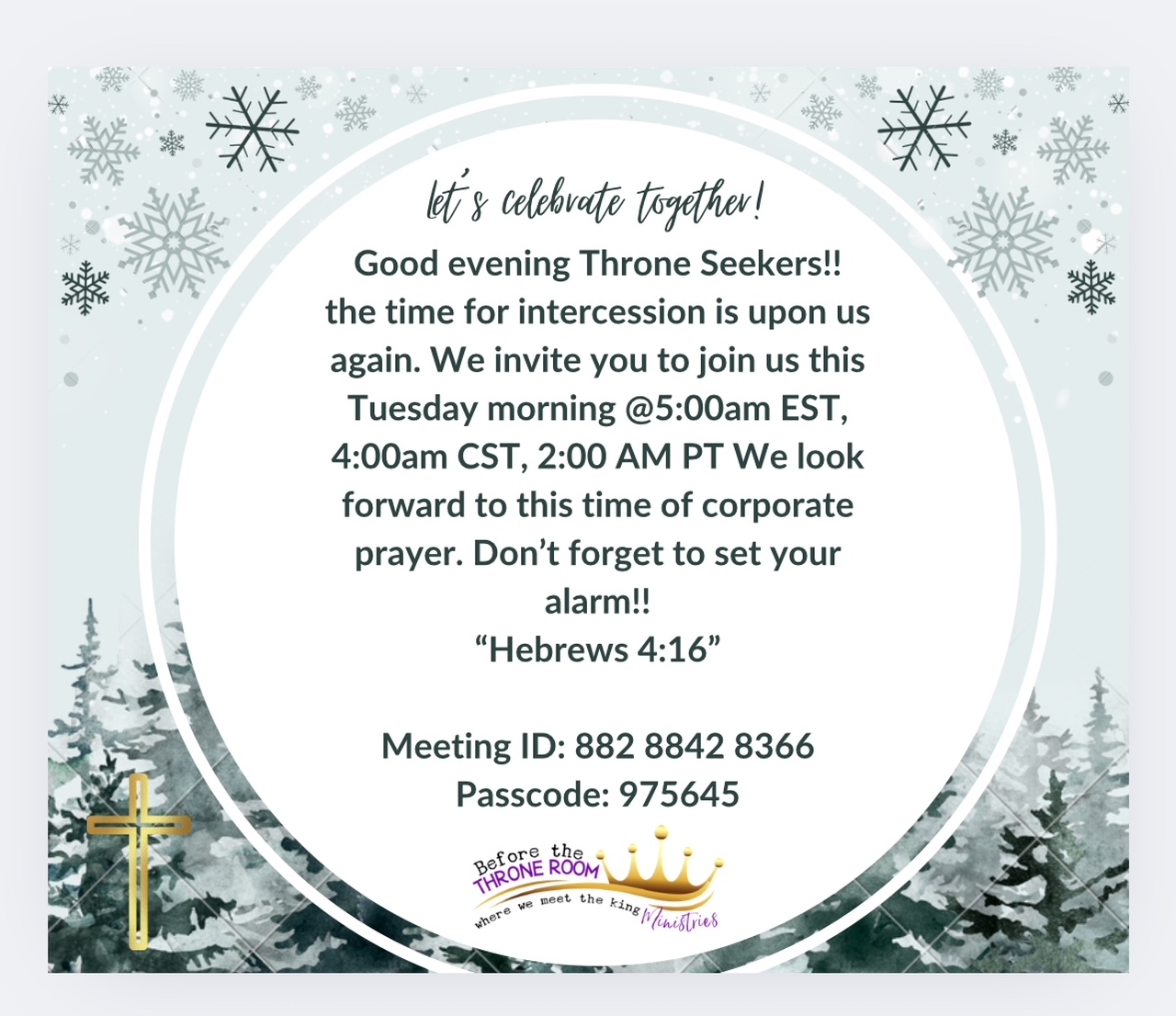 The Purpose of Before the Throne Room Ministries is to create a safe place for like minded individuals who are seeking to come closer to Christ and become members of the body of Christ who want to be free to express themselves as well as receive wisdom and knowledge from the throne of grace through word of encouragement that are prepared from the word of God. Received directly from the father